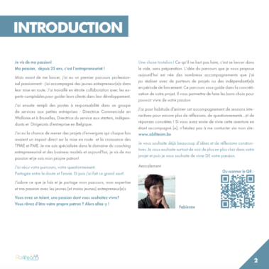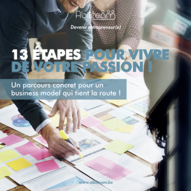 Abiliteam a décomposé son accompagnement en treize étapes successives qui, réalisées une par une, permettent de consolider l’entrepreneur qui sommeille en vous. Chaque session – les dix sessions se déroulent au rythme d’une par semaine – permet à votre accompagnatrice, Fabienne Evrard, d’évaluer vos connaissances du monde de l’entrepreneuriat et d’adapter son accompagnement en fonction.